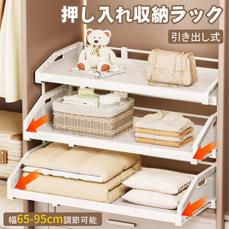 爆買 RAKU 押し入れ収納ラック 引き出し式 幅65~95×奥行45×高さ37/45cm 伸縮可能 積み重ね ガード付 通気設計 整理棚 フリーラック 押入れ収納 ラック 収納棚