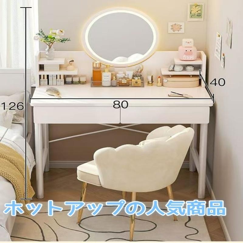2024 最新型 ドレッサー おしゃれ テーブル 安い 鏡台 椅子 スツール セット 収納 ライト デスク 化粧台80CM メイク コスメ かわいい 化粧 家具 新生活