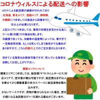 コロナウィルスによる航空便減便の影響で、北海道、東北、信越、静岡県、沖縄県につきましては、到着まで2日以上かかってしまう為、クール便(冷蔵)にて発送致しますが、それでも死んでしまう海老がでてしまう可能性があります。