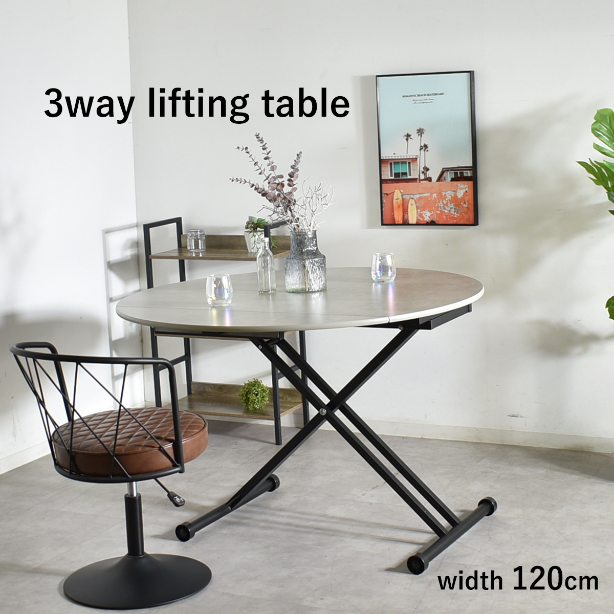 昇降式テーブル 丸 幅120 ダイニングテーブル 昇降式 テーブル 半円 長方形 円形 120cm幅 北欧 おしゃれ ローテーブル 昇降テーブル 3way テーブル 伸長式
