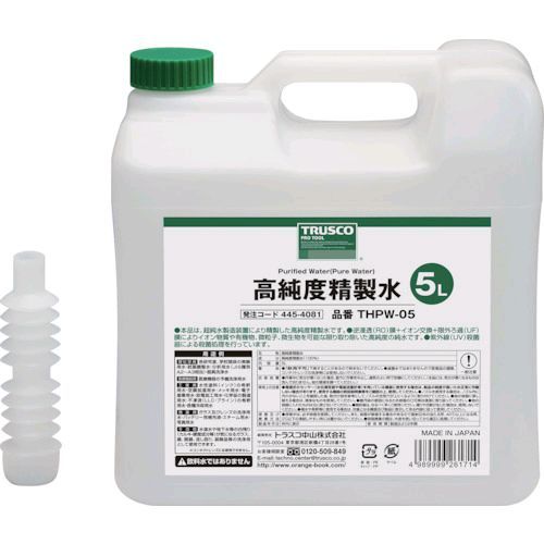 ●飲料水ではありません。<精製水とは>水に何らかの手を加えている物全てを精製水と呼びます。本製品THPW-05はイオン交換法による精製水(純水)であり、+イオンも-イオンもほとんどない純水です。純水は別名「ハングリーウォーター」と呼ばれ、接触するものに含まれる物質を吸収しやすい性質を持っています。飲料水に適さないのはそのためです。
