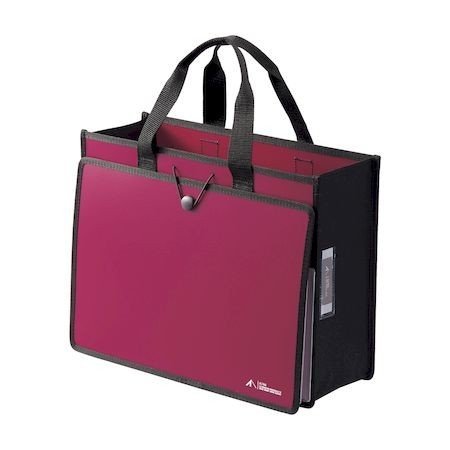 折りたたみ式のP.P.製ツールバッグ。 書類整理に便利なジャバラポケット付き。 クリヤーホルダーや書類収納に便利なジャバラポケット(4仕切)付き。 バッグの両サイドにはそれぞれ、ボトルが入るメッシュポケットとタイトル記入ができる見出し付き。 底板を抜き取るとスリムに持ち運びできます。