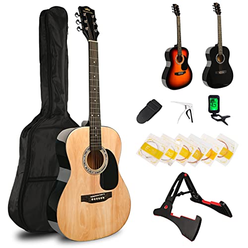 BESYOU アコースティックギター バスウッド材 初心者セット 初級 経験者ギターセット 大人 学生用 39インチ アコギ ギターセット チューナー ギター ピック付き