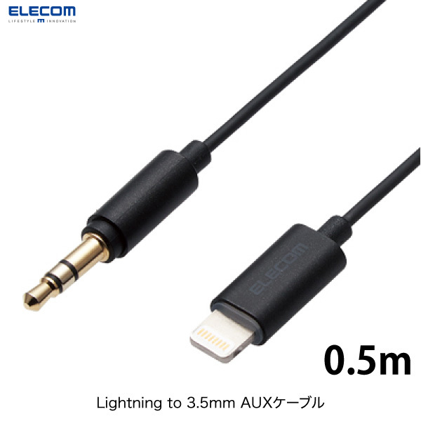 エレコム ELECOM Lightning to 3.5mm AUX オーディオケーブル ストレート 0.5m ブラック AX-L35D05BK