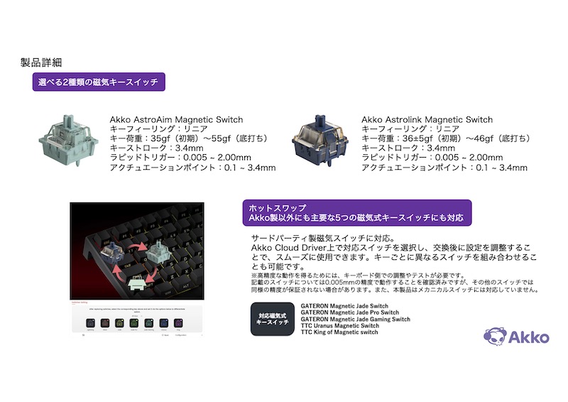 ホットスワップ対応 : 下向きN極の磁石を採用したHEスイッチと互換