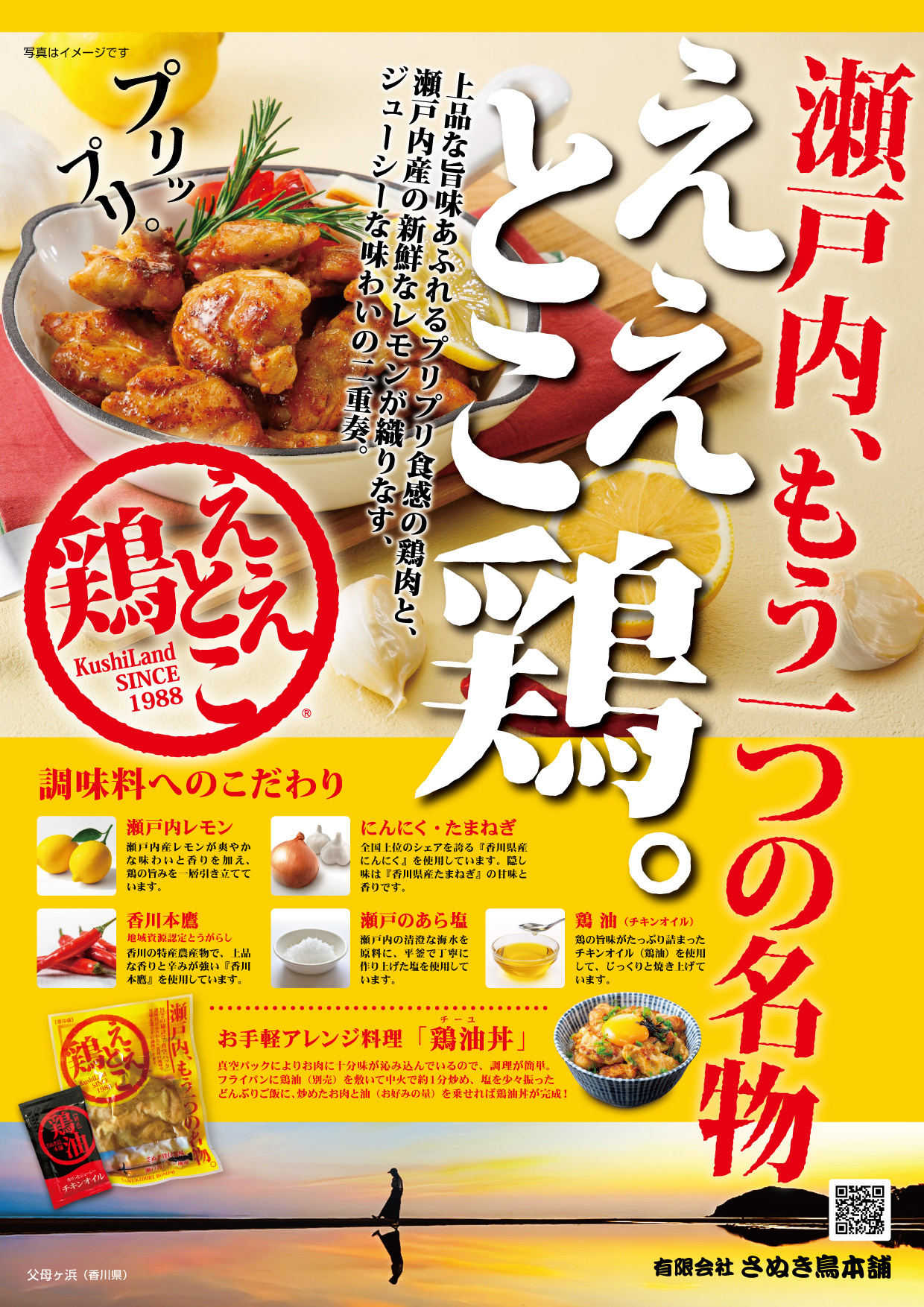 上品な旨味あふれるプリプリ食感の鶏肉と、瀬戸内産の新鮮なレモンが織りなす、ジューシーな味わいの二重奏。