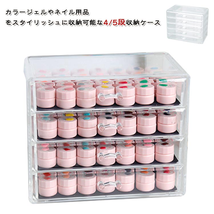 | カラージェルやネイル用品をスタイリッシュに収納可能な4/5段収納ケース 透明感抜群の高品質プラスチック素材です。美しく中に入れたものを一目で確認でき便利です。 | |
