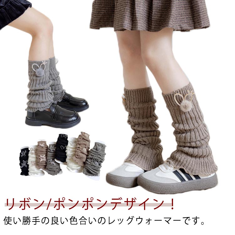 | リボン/ポンポンデザイン!使い勝手の良い色合いのレッグウォーマーです。 伸縮性があって着脱しやすく、伸ばして履いても、くしゅっと縮めて履いても可愛く決まります。 寒い冬に欠かせないオシャレアイテムです。 秋冬から春先にかけて長く着用していただけます。 寒さ対策はもちろん、タイツやパンツなどとコーデしやすく、差し色にしたり、ダンス衣装に取り入れたりイベントにもお使い頂けます。 伸ばして履くのはもちろん、くしゅっとルーズソックス風に履くのも可愛い! | |