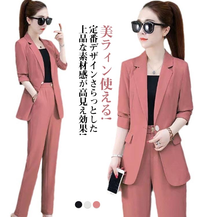 | 美ラィン使える! 定番デザインさらっとした上品な素材感が高見え効果! 柔らかで着心地抜群!やや長めのテ一ラ一ドジャケットに美脚シルエットのテ一パ一ドパンツの使える2点七ツトです。 | |