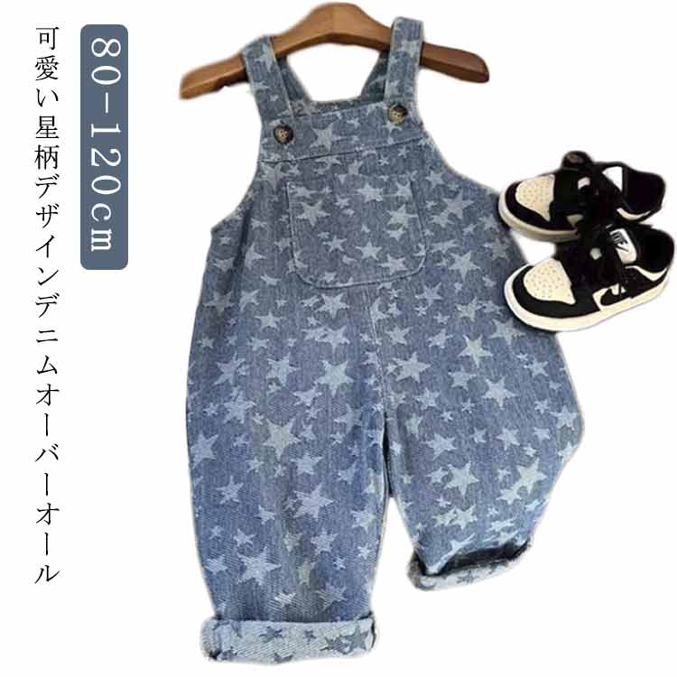 | 可愛い星柄デザインデニムオーバーオール いつでもおしゃれに着こなしアイテム オールシーズンに使える 男の子にも 女の子にも | |