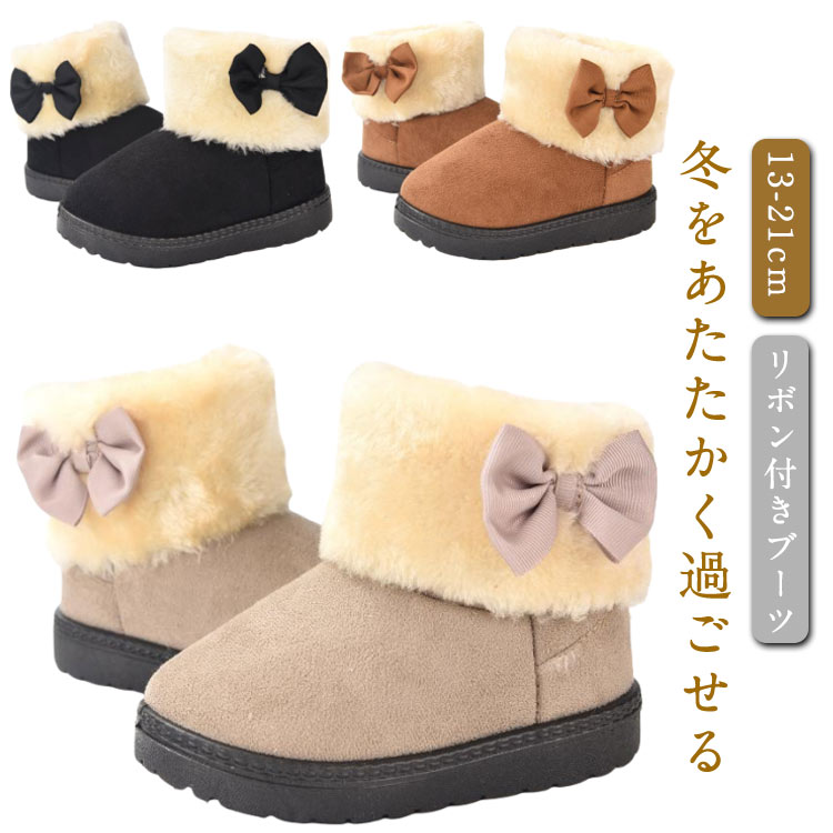 | 13-21cm リボン付きブーツ 冬をあたたかく過ごせる つま先までしっかりとモコモコのファーを敷き詰めました。 滑り止め付きだから安心。 | |