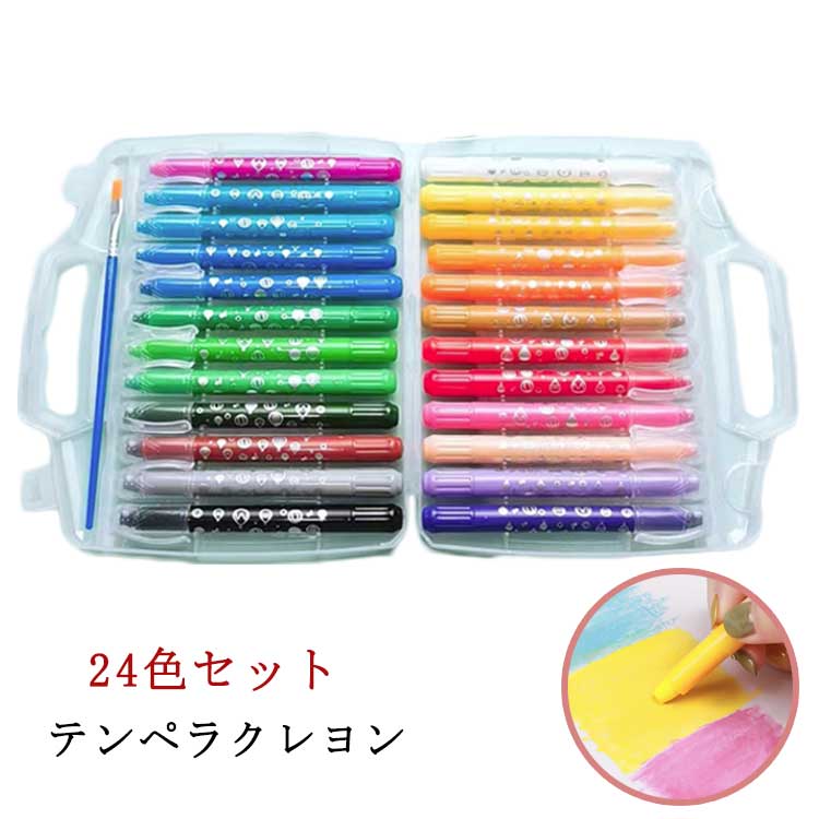 | 24色セット テンペラクレヨン 子供が楽しみをいただける、24色のテンペラペイントスティック×2セット入れています。 回転繰り出し式なので、手が汚れない、芯は折れにくくなっています。 穴なしの表面に使うときれいに拭き取れます。 | |