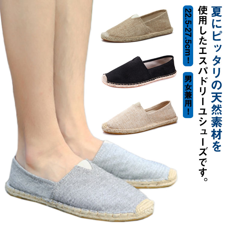 | 22.5-27.5cm!男女兼用!夏にピッタリの天然素材を使用したエスパドリーユシューズです。 スリッポンやサンダルのようにラフに涼し気に履きこなせます。 蒸れにくくストレスフリーで履き易く肌馴染みも優しい。 履き易く圧迫を軽減してくれて歩きやすい。 耐久性良いゴム底なので、滑り止め仕様のアウトソールでしっかり歩けます。 デニムはもちろんアンクルパンツやハーフパンツとの相性も抜群! | |