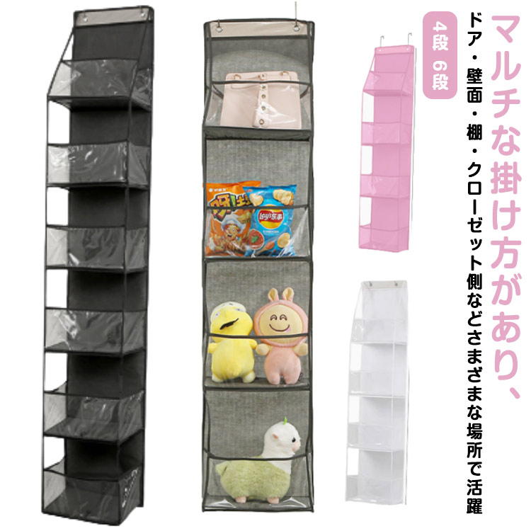 | マルチな掛け方があり、ドア・壁面・棚・クローゼット側などさまざまな場所で活躍 ドアフックを採用することで、穴をあける必要がなく、壁を傷つけたくない方や、賃貸のお部屋にお住まいの方にもオススメ ぬいぐるみも余裕で収納驚きの大容量!大きなものもしっかりと収納し、整理整頓が楽しくなります。 | |