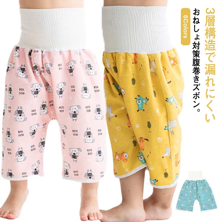 | おねしょ対策腹巻きズボン。パンツや布団、マットなど濡れからさようなら♪子どものおねしょ対策・トイトレに大活躍する防水おねしょパンツ。 綿素材の間に防水TPUフィルムを内蔵し、肌触りがよく、おしっこをしっかりガードし、漏れにくい工夫が施されています。 ずれにくいスボンタイプなので、寝返りをうっても裾部分がめくれたりする心配がありません。寝相の悪い子でも安心♪ お腹や腰を冷やさない腹巻付き設計、ウエスト部分は柔らかで伸びのよい総ゴム仕様で、ストレスなくしっかりフィット。 | |