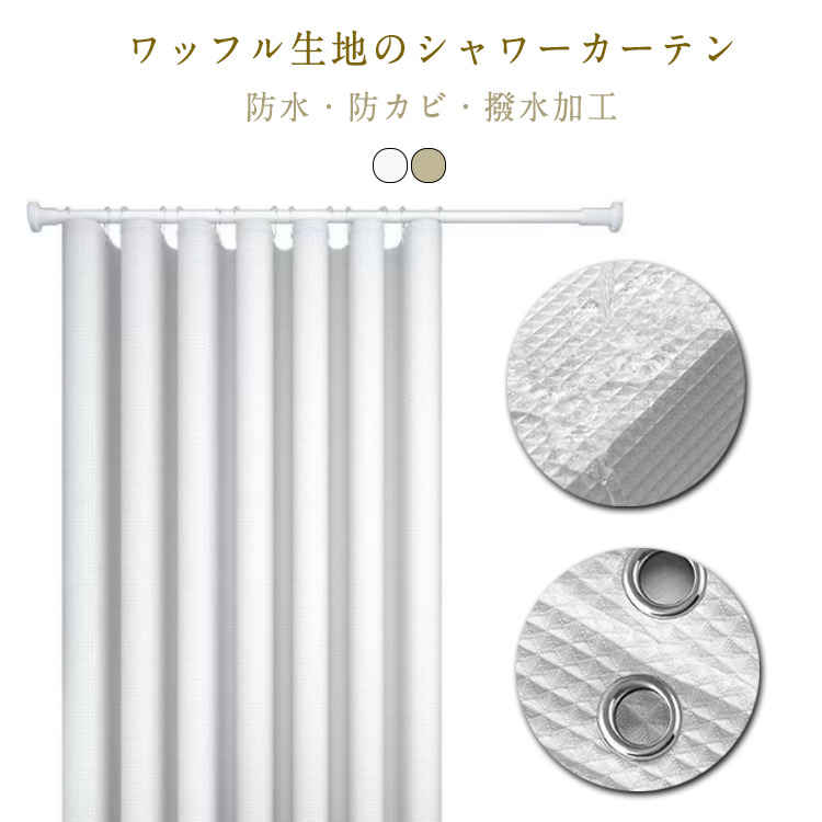 | ワッフル生地のシャワーカーテン 180x180cm 180x200cm 透けない 防水・防カビ・撥水加工 保温効果 水洗いOK 丈夫で凹凸の質感があるワッフル素材のシャワーカーテンです。 防水・防カビ・撥水加工がほどこされており、速乾性にもすぐれます。 厚みのある生地なので保温効果もあり、寒い冬でも快適な入浴タイムを楽しめます。 上部にはリング穴があいているので、簡単に取り付け・取り外しが可能です。 バスルームはもちろん洗面所・キッチン・窓・部屋の目隠しや仕切りにもおすすめです。 | |