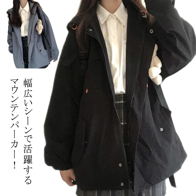マウンテンパーカー レディース ジップアップパーカー アウター ジャケット マンパ ブルゾン フード付き 羽織 撥水 無地 ゆったり 大きめサイズ 体