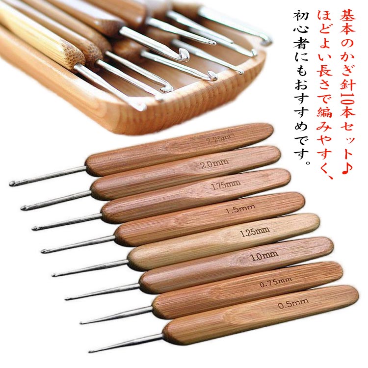 | 基本のかぎ針10本セット♪ほどよい長さで編みやすく、初心者にもおすすめです。 やわらかな木製グリップですべりにくく、長時間編んでも手が疲れにくいハンドルをかぎ針に使用。 編み始めると、ついつい夢中になってしまうから、ソフトな素材は手に優しくて嬉しい♪ かぎ針をハンドル内部まで入れることで、安定性&耐久性がアップ!さらに、丈夫に使いやすくなりました。 かぎ針を使って、レース編みや帽子、靴下などハンドメイドを楽しみましょう♪ | |
