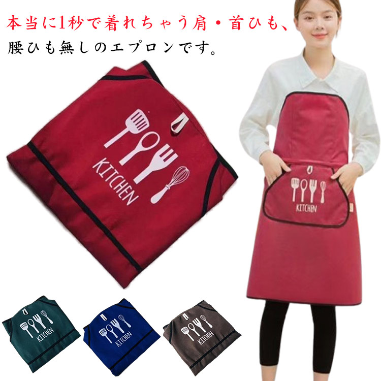 | 本当に1秒で着れちゃう肩・首ひも、腰ひも無しのエプロンです。 ひもを結ぶのがわずらわしい方やお子様にも最適です。 肩、首が凝るというご意見を聞き、そのようなことがないものを開発いたしました。 ポケットも大きめに設計しました。メモ帳はもちろん、お財布やスマホが入るようにポケットの大きさもこだわりました。 モノを入れても動きやすいように工夫されております。サイドのタオル生地にてすぐ手を拭くこともできます。 ショート丈で動きやすく、すぐ作業に取り掛かれます。お友達にプレゼント、ギフト、贈り物にも大変喜ばれます。 家庭でのご使用ももちろん、ホールスタッフ、キッチン・ガーデニング、雑貨屋、飲食店、DIY、行事など様々なシーンに対応致します。 | |