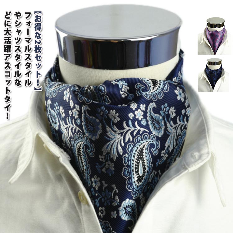 | 【お得な2枚セット!】 フォーマルスタイルやシャツスタイルなどに大活躍アスコットタイ! 首元をおしゃれに演出する小洒落たアクセ。 セレブのようにきこなして、まわりと差をつけちゃいましょう。 結婚式の二次会に、パーティーにフォーマルシーンにピッタリアイテム! コーディネートしやすいシンプルデザインでシルクのような贅沢な光沢で心地良い肌触り。 シャツ・ジャケットスタイルにエレガントなアクセントとしておすすめです。 | |