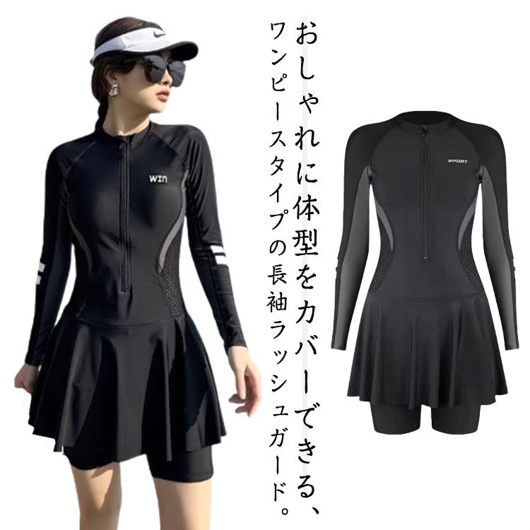 | ・おしゃれに体型をカバーできる、ワンピースタイプの長袖ラッシュガード。 ・通気性・速乾性・伸縮性のある水着素材で作られており、なめらかさらさらの肌ざわりが魅力的。 | |