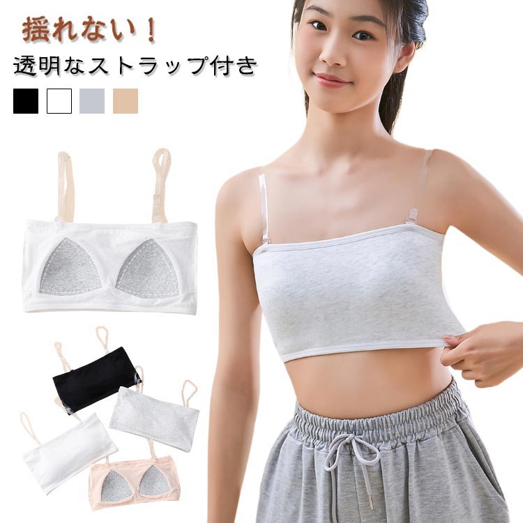 ジュニア チューブトップ カップ付き ベアトップ 女の子 キッズ 子供 レディース ずれない 透明なストラップ付き ダンス衣装 スポーツブラ 肩紐なし