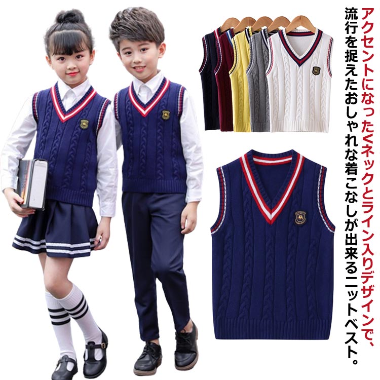 | アクセントになったVネックとライン入りデザインで、流行を捉えたおしゃれな着こなしが出来るニットベスト。 インナーにビックTシャツは勿論、ロンTやYシャツなど合わせたレイヤードスタイルもオススメです。 しっかりした生地で毛玉ができにくくお子様の着心地も抜群です。 洗濯ネットを使用すればご家庭でのお洗濯もできるのも嬉しいポイント。 シンプルなデザインなので、どんなスタイルにも合わせやすく、通学はもちろん、普段着としてもお使いいただけます。 | |
