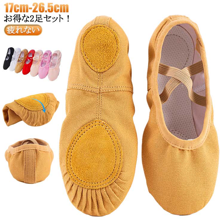 | お得な2足セット!17cm-26.5cm 子供から大人まで穿けるダンスシューズ。 柔らかく、足裏感覚をつかみやすいダンスシューズ。 安定していて、長時間のレッスンでも疲れにくいフラットタイプもポイント! しかも本体と同色のゴム付きで足の甲にもやさしいつくり。 | |