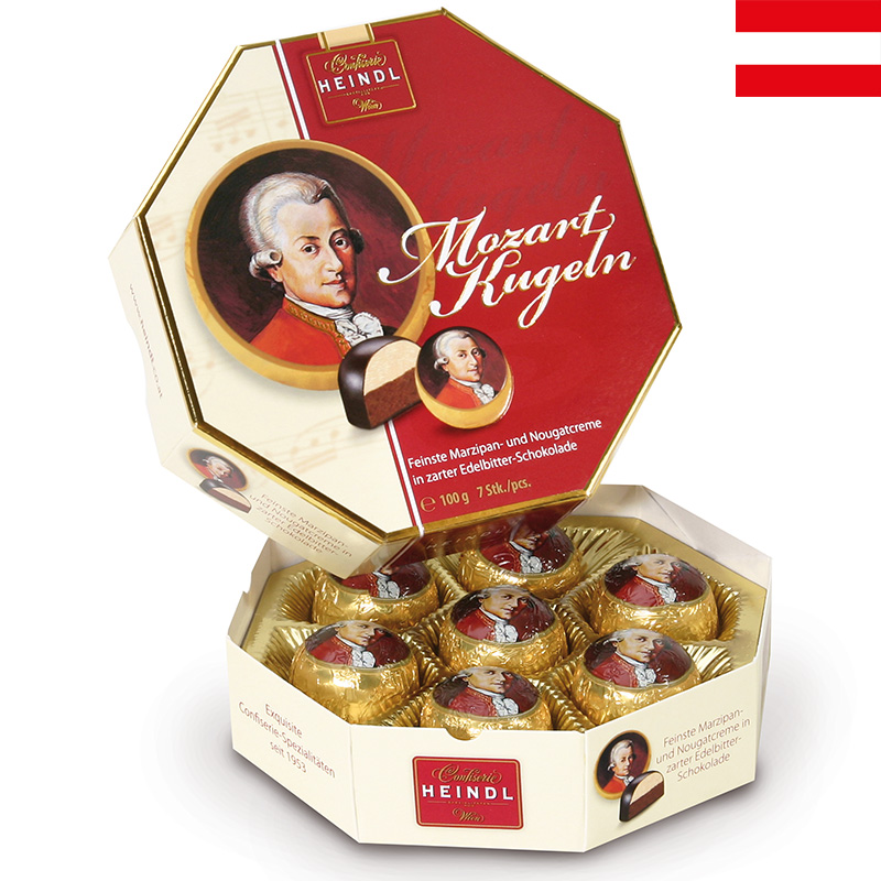 オーストリアの作曲家モーツァルトがデザインされた八角形パッケージ。