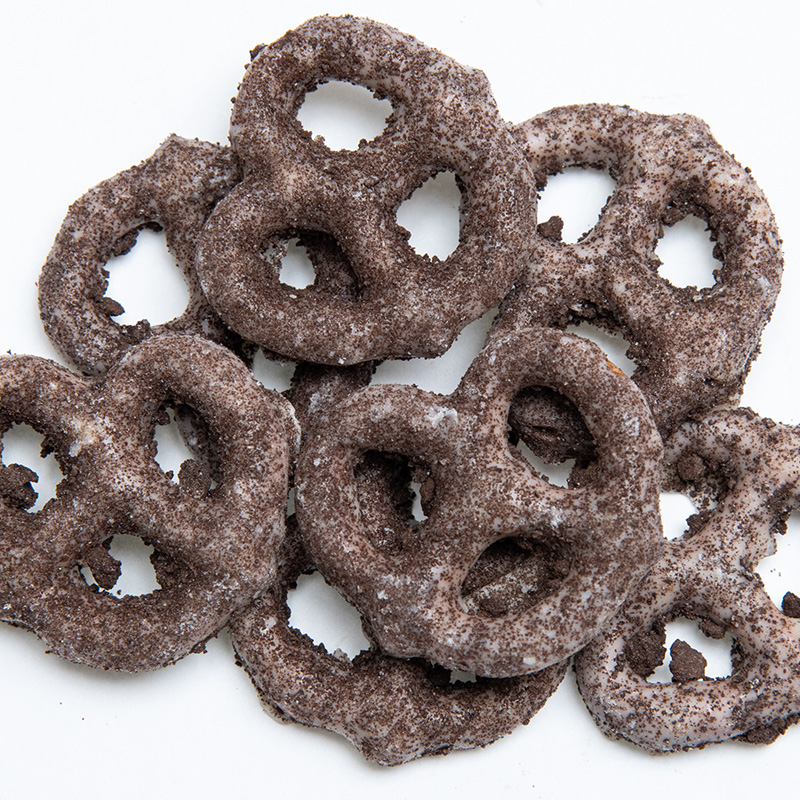 人気のクッキー&クリームをプレッツェルにコーティング。