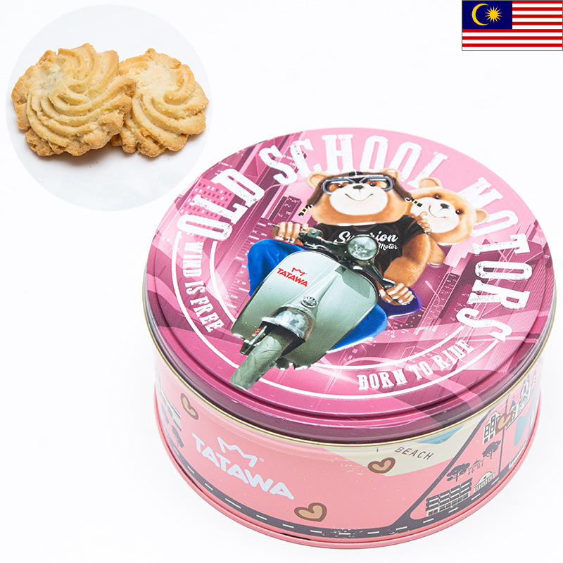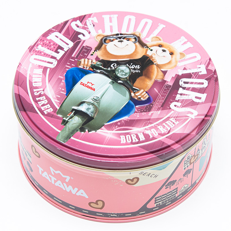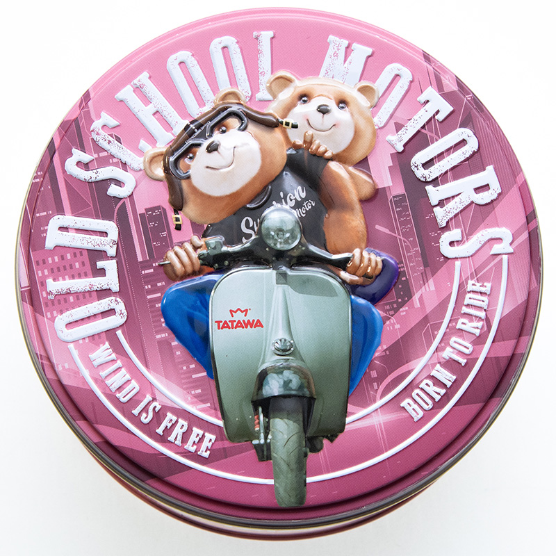 2匹のクマが描かれた缶に、12枚のビスケットが入っています。