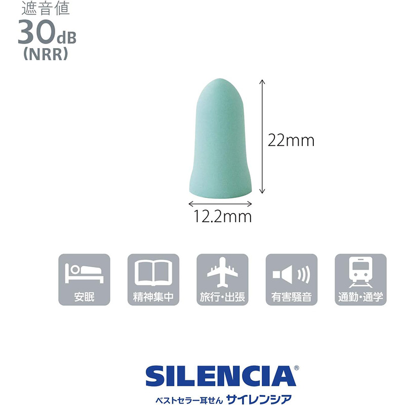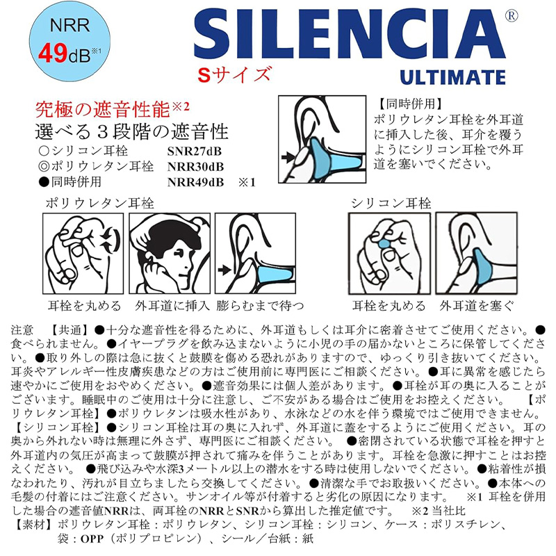 * ポリウレタン耳栓は水洗い不可、水泳には使用できません。