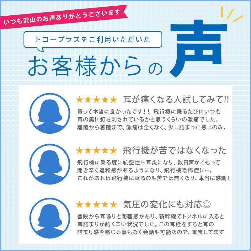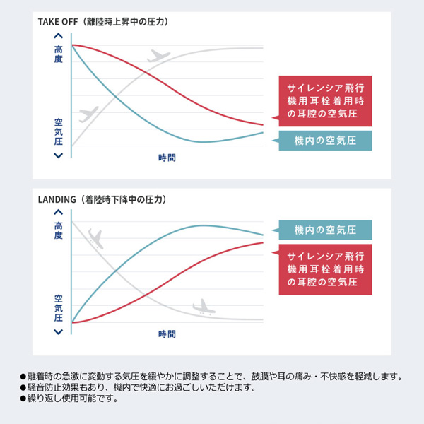 ・飛行機内での鼓膜や耳の痛み不快感を効果的に軽減。