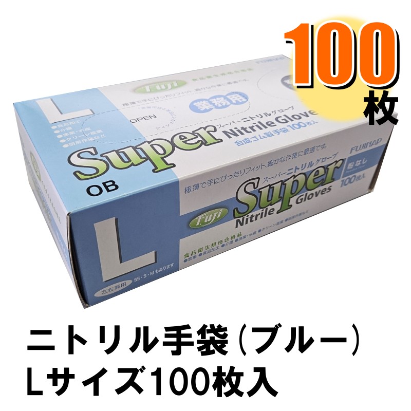 Fuji スーパーニトリルグローブ L ブルー パウダーフリー 1箱100枚入り 爆買
