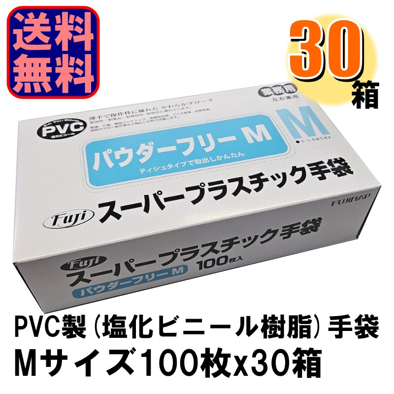 Fuji スーパープラスチック手袋 M パウダーフリー 1ケース30箱入り 爆買