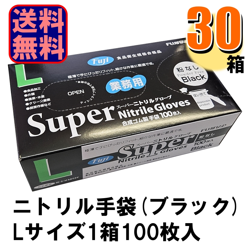 Fuji スーパーニトリルグローブ Lサイズ ブラック 黒 パウダーフリー 1ケース30箱入り 爆買