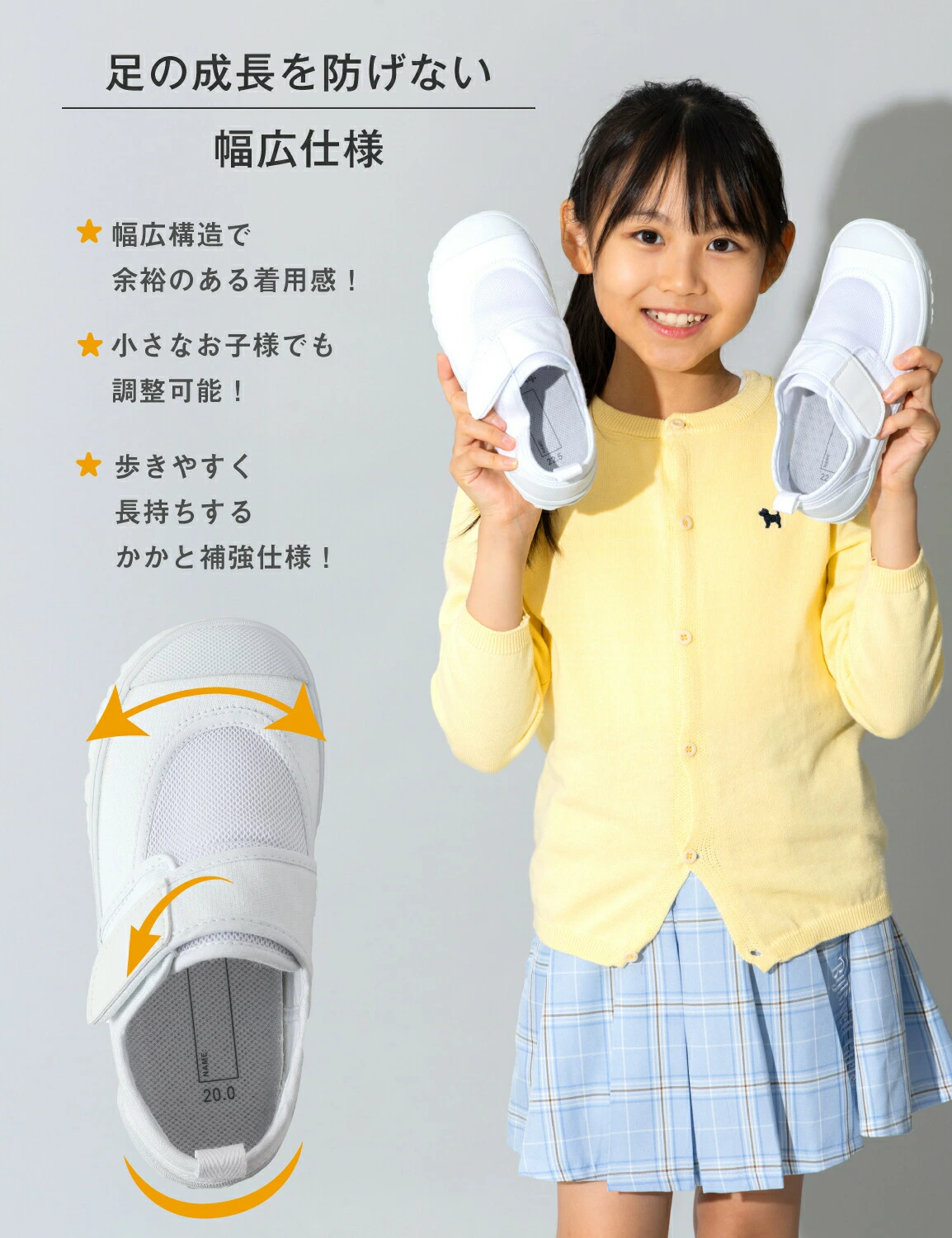 【お子様の成長を妨げないスクール上履き】