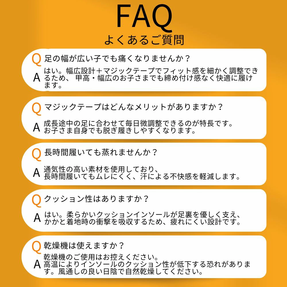 ※マジックテープで調整できる為お子様の成長を考え、やや大きめのサイズ選びをおすすめします。