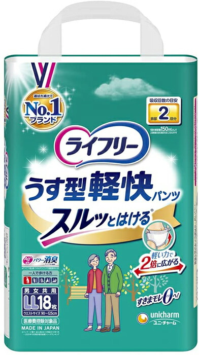 ユニ・チャーム ライフリー うす型軽快パンツ LL/56749→56170 18枚