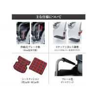 ●標準機能/折りたたみ、背折れ、フットレスト高さ調整、介助ブレーキ、クッション、伸縮式ブレーキ棒(10cm延長可能)、エアータイヤ