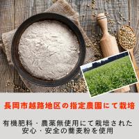 「コシ」と「のど越し」が楽しめる本格的乾麺。地元・越路産そば粉を使用し、有機肥料・農薬無使用にて栽培された安心・安全のお蕎麦です。 そば粉は、地元長岡市越路地区にある指定農園「越路原」の広大な大地にて栽培されたそば粉を使用。