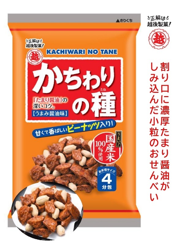 じゅわっと濃厚うまみ醤油をかけた割り堅焼きせんべいに厳選ピーナッツを加えました。お茶うけはもちろん、ビールにもぴったり!!