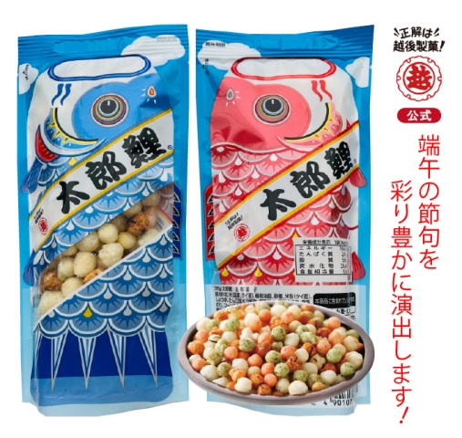 端午の節句のお祝いに、越後製菓の太郎鯉で彩りを添えてはいかがでしょうか。