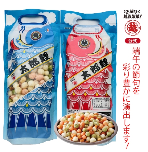 端午の節句のお祝いに、越後製菓の太郎鯉で彩りを添えてはいかがでしょうか。