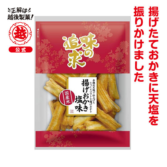 揚げたてのおかきに天塩を振り掛け、あっさりとした塩味に仕上げました。