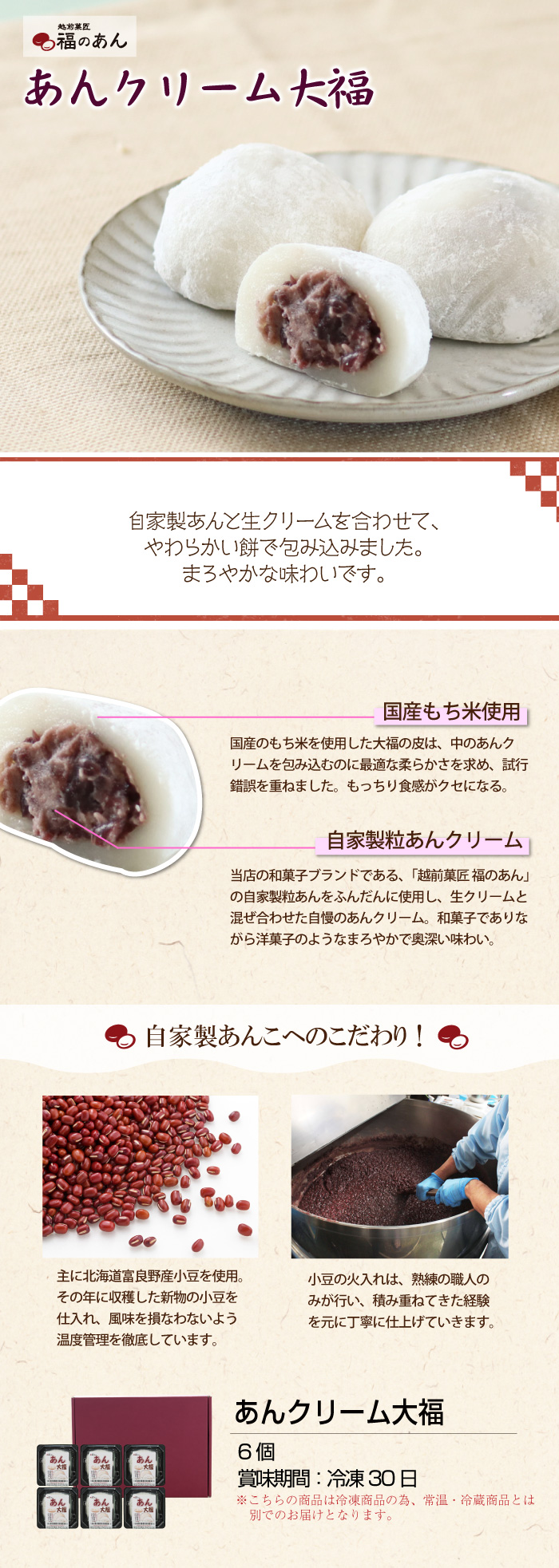 ふわっととろける大福 「あんクリーム大福」バレンタインにも♪ 福のあん 自家製あん お茶請け 和菓子