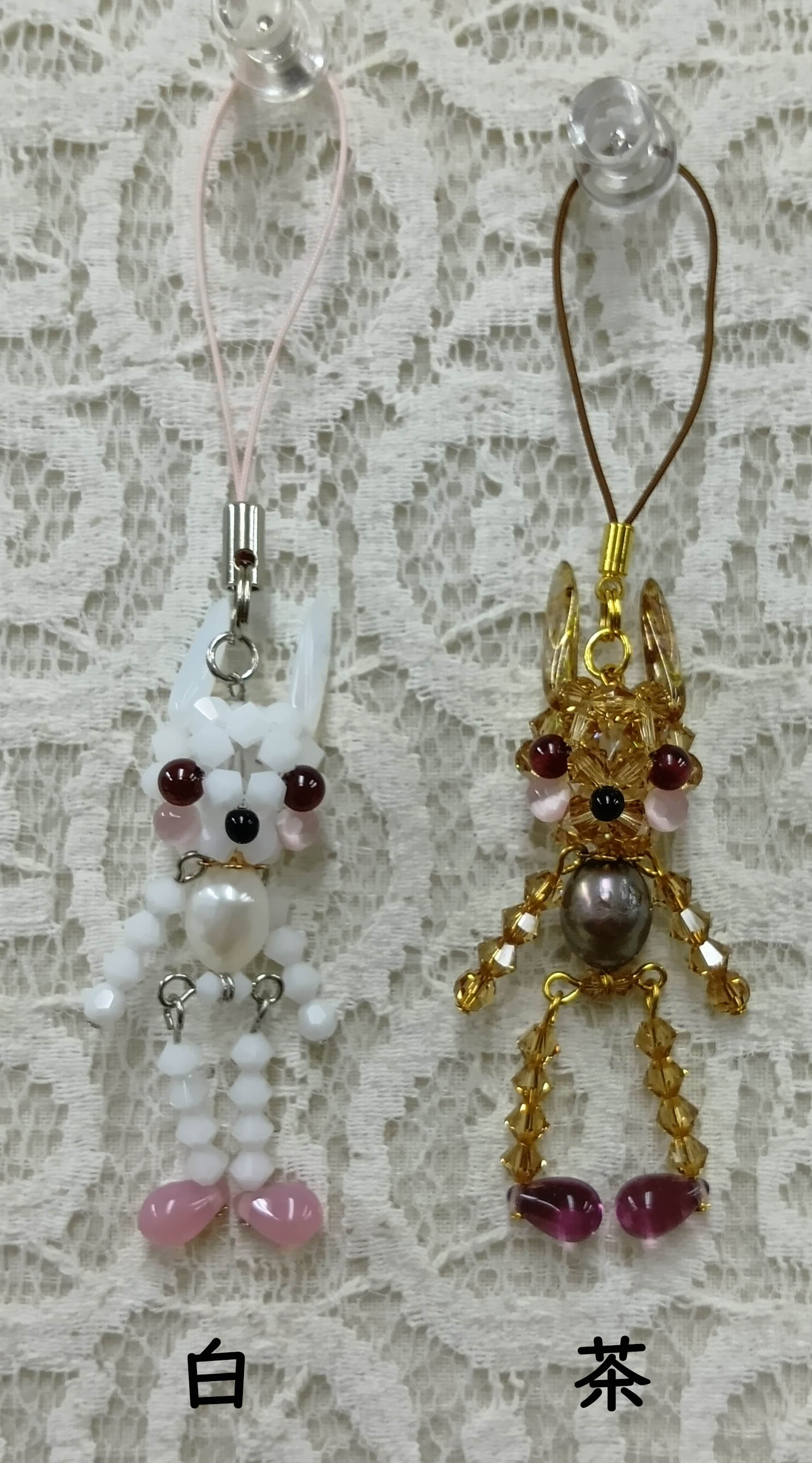 スワロフスキービーズなどを使ったガーネットの目が印象的なラビットのキットです。