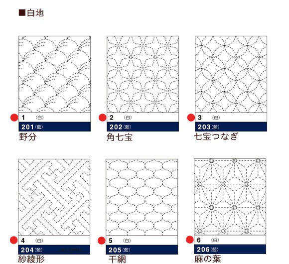 刺しやすい白色の晒し木綿です。図案はプリント済みで刺し順も入っているのでわかりやすくなっています。