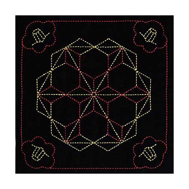 [VD001]オリムパス 刺し子キット 246(黒) 花ふきん椿と飛び麻の葉[RPT]