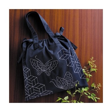 [VD001]オリムパス 刺し子キット257(紺) ショルダーバッグ蝶と寄木[RPT]